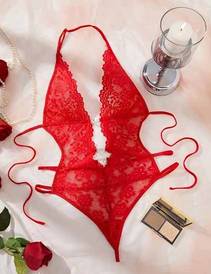 الملابس الداخلية المثيرة، مايو لانجري لباس داخلي نسائي شفاف من الدونتيل الناعم مع ظهر مفتوح ومثير يتكون من قطعة واحدة، جميع المقاسات متوفرة حتى المقاسات الكبيرة